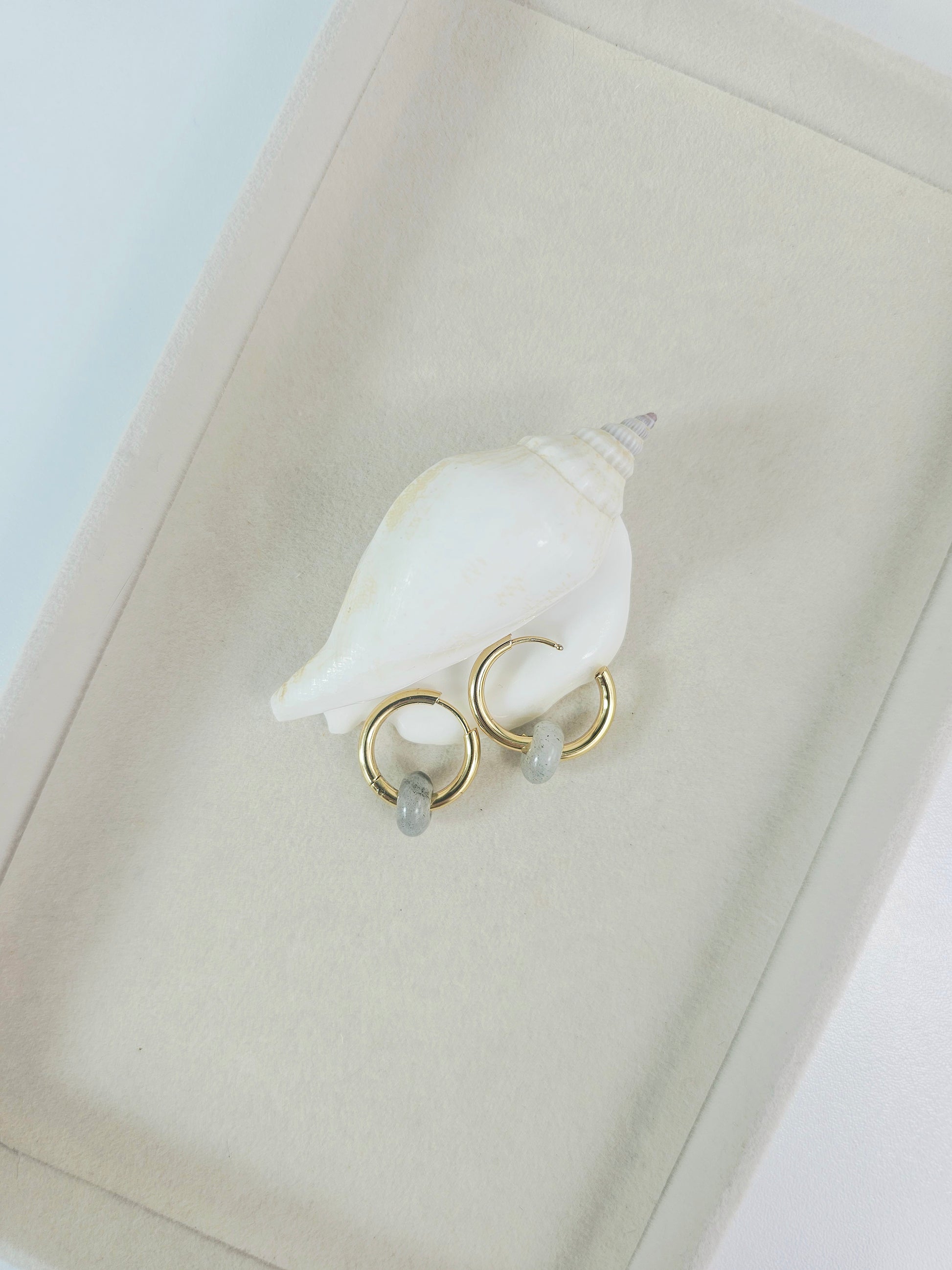 Anneau en acier inoxydable de 14mm de diamètre et perles de labradorite grises.