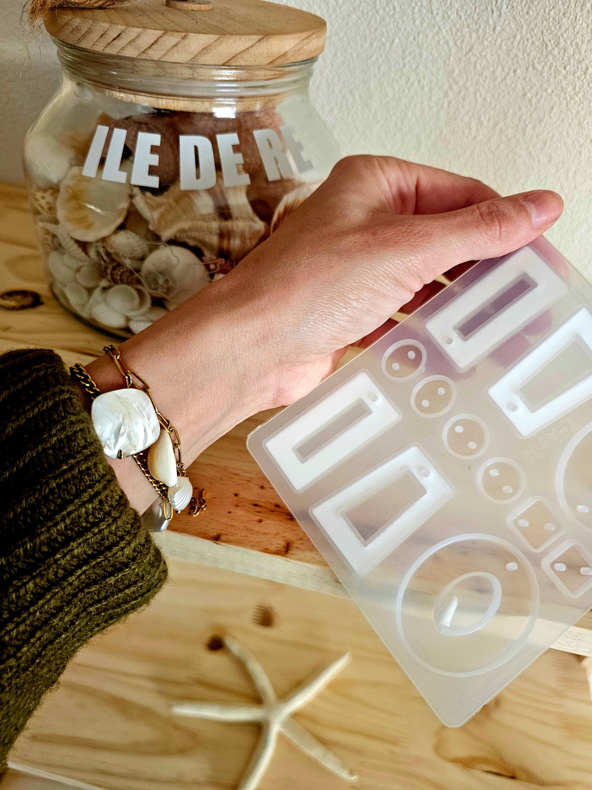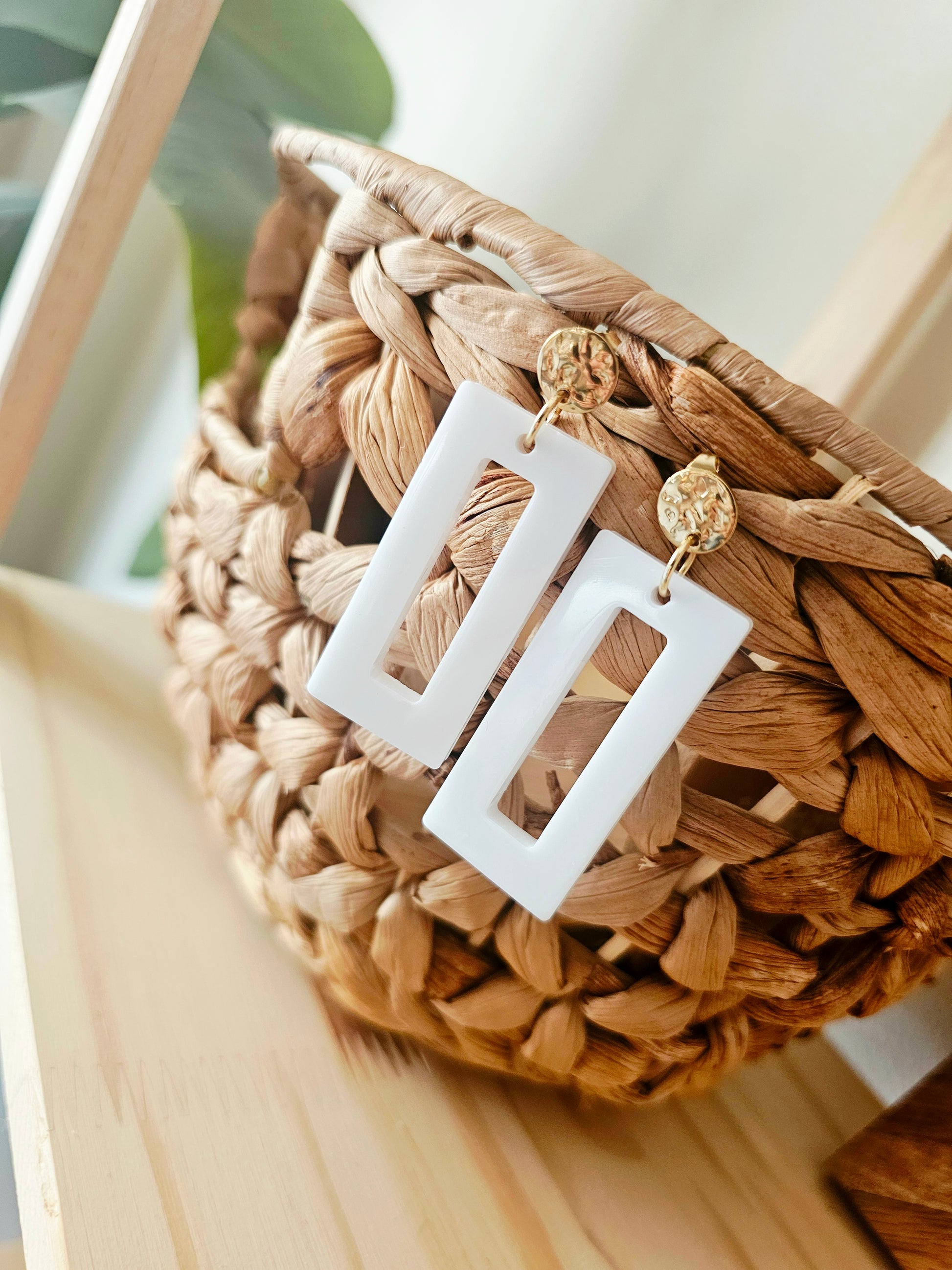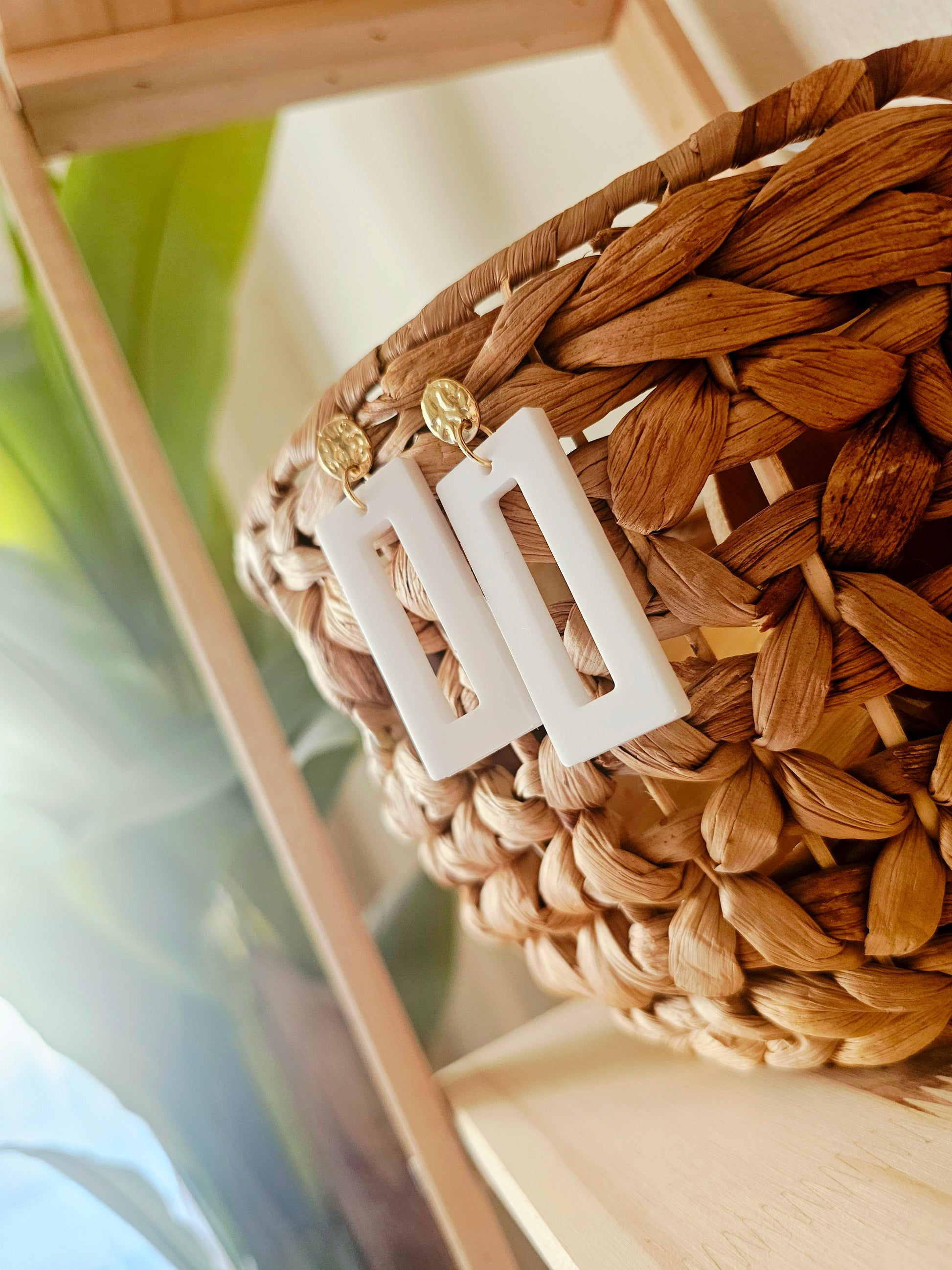 Boucles avec base martelée en acier inoxydable et son pendentif en résine epoxy blanche