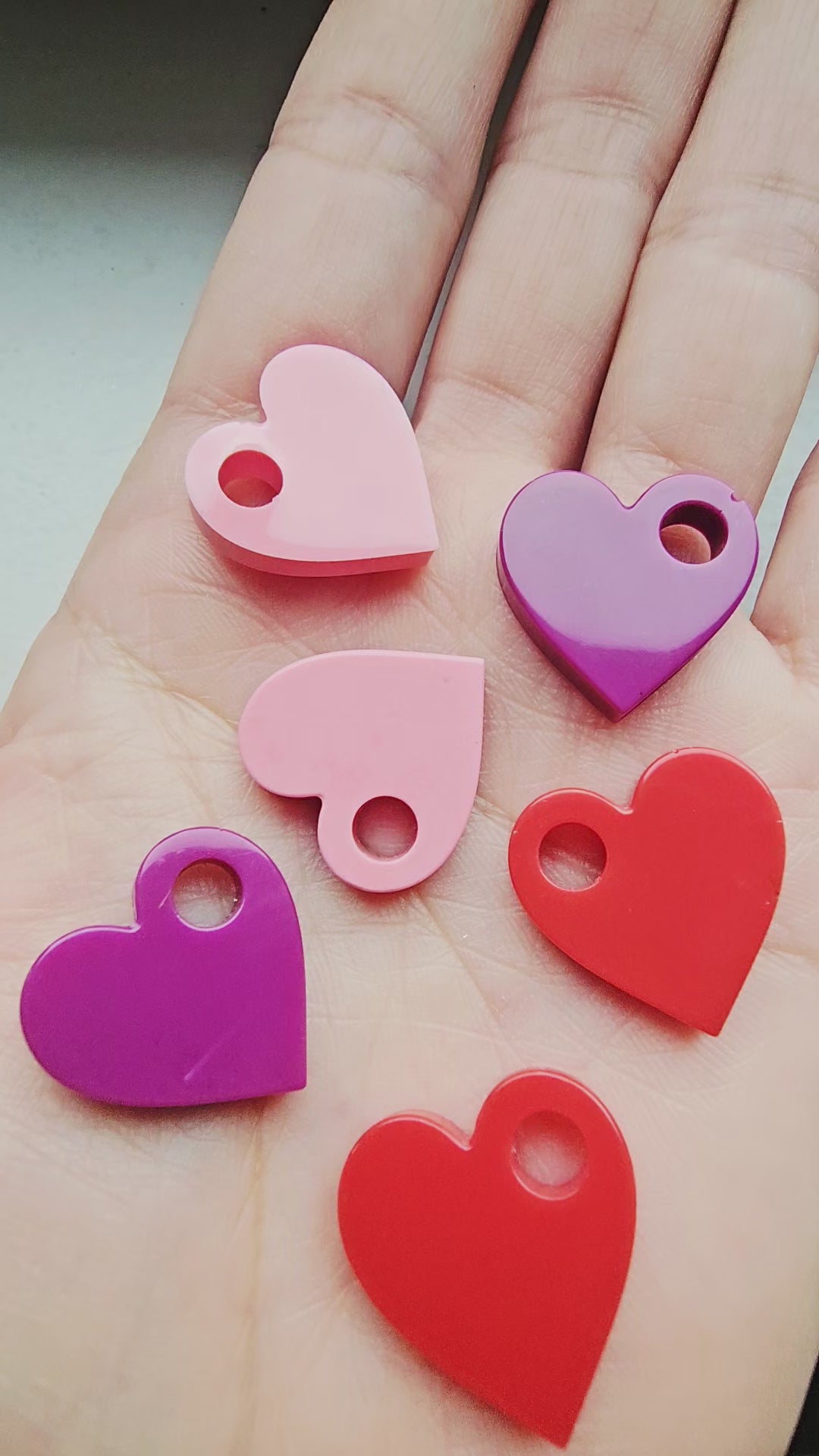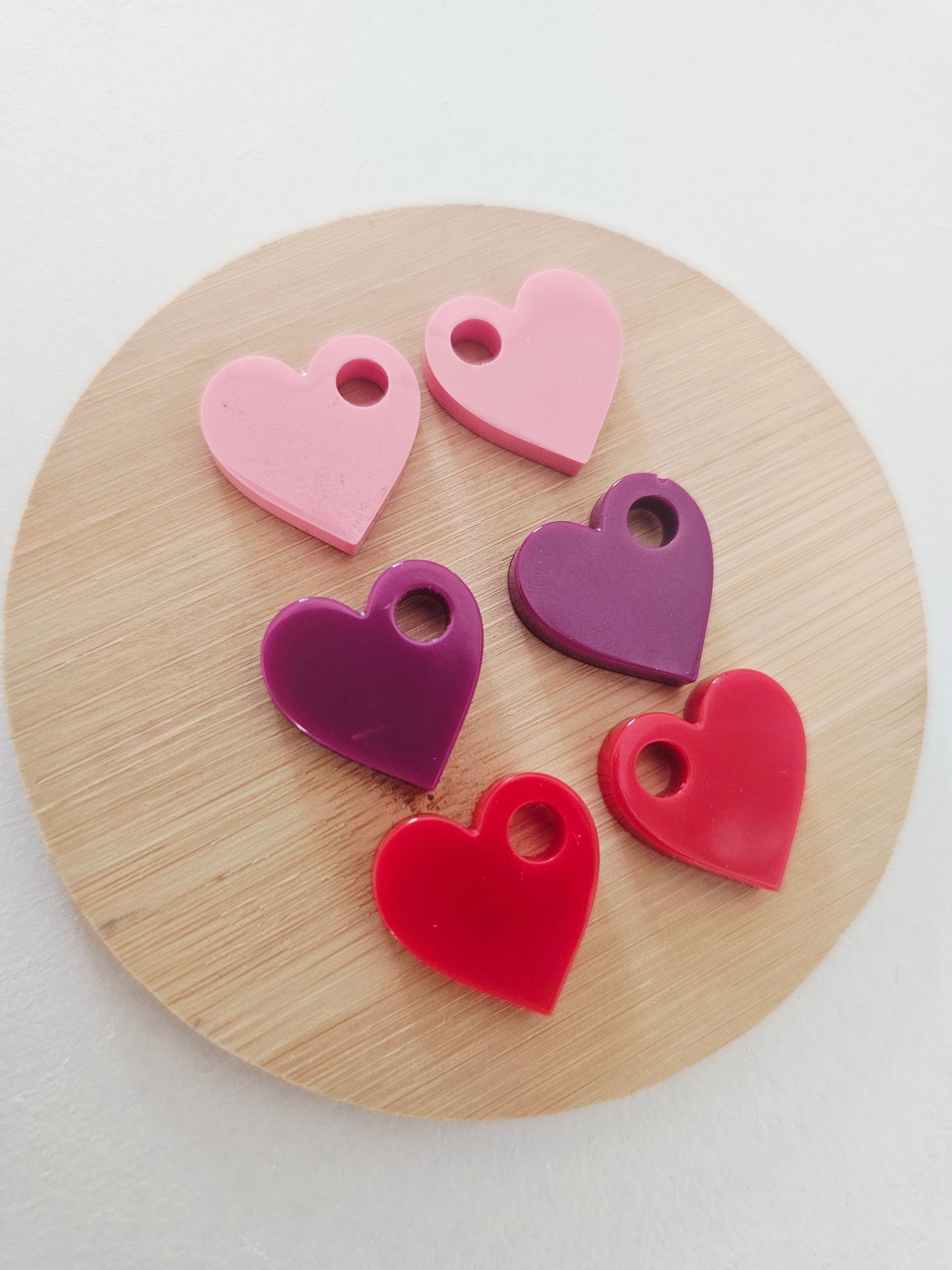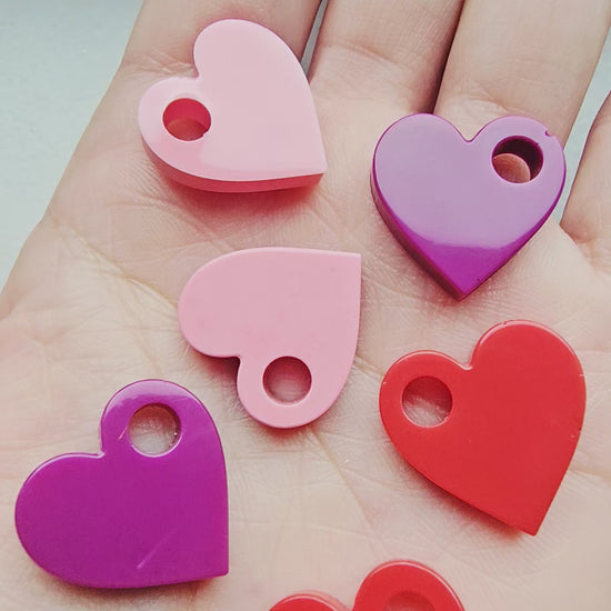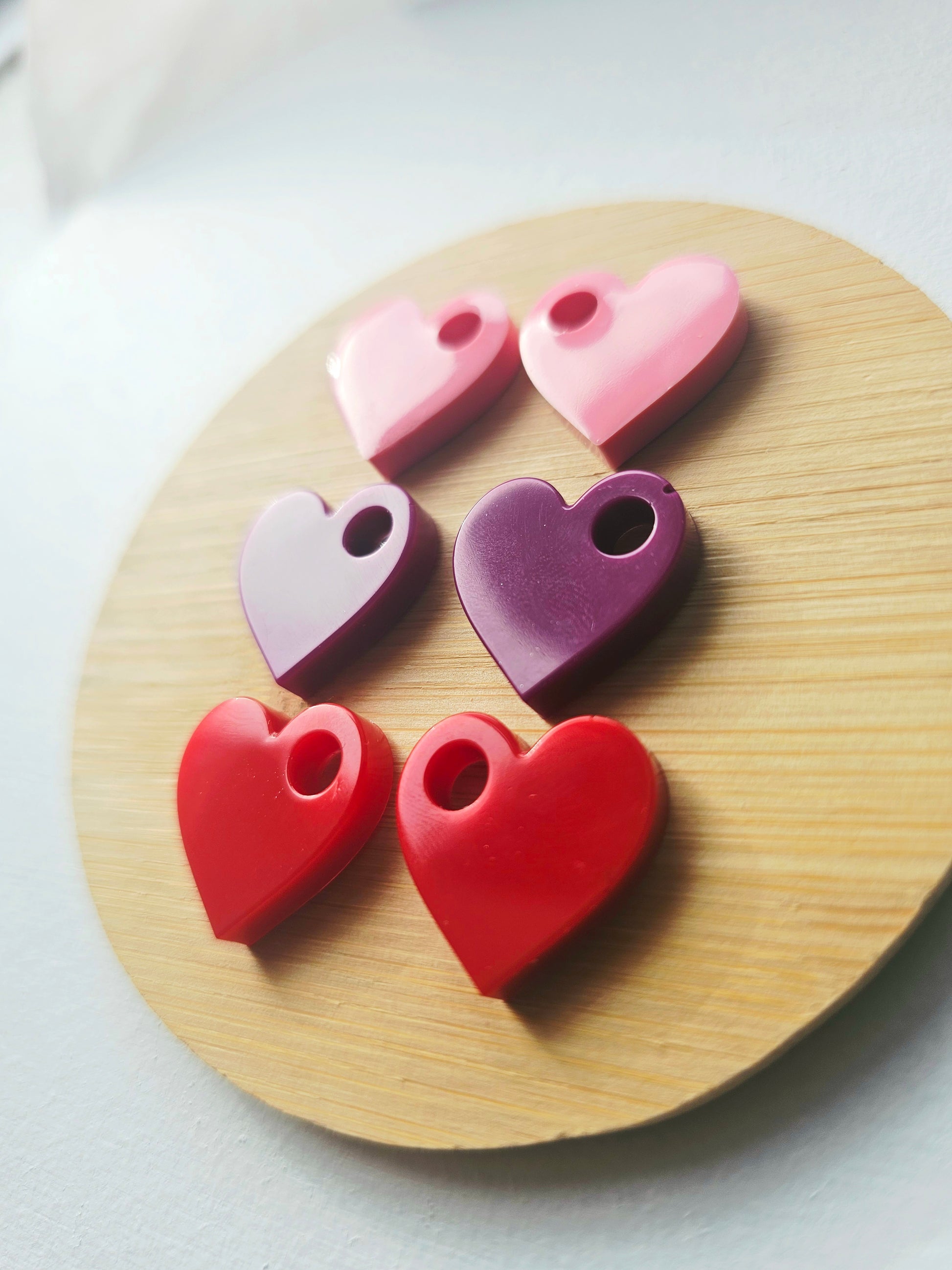 Coeur fait de résine epoxy colorée, vendus par deux. Chaque coeur est fait à la main (coulage, démoulage et finitions).