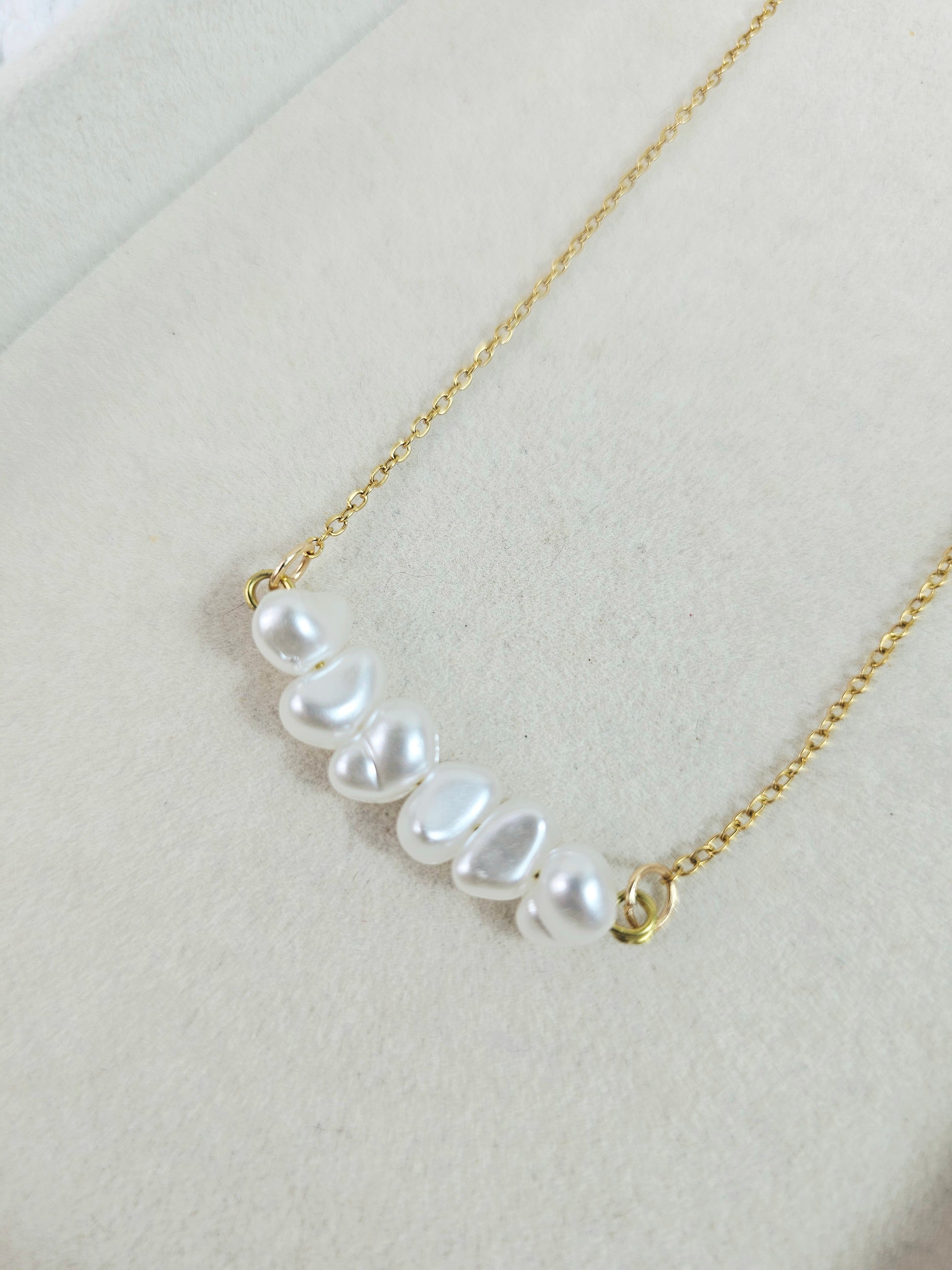 Perles d'eau douce sur chaine de 42cm et fermoir en acier inoxydable