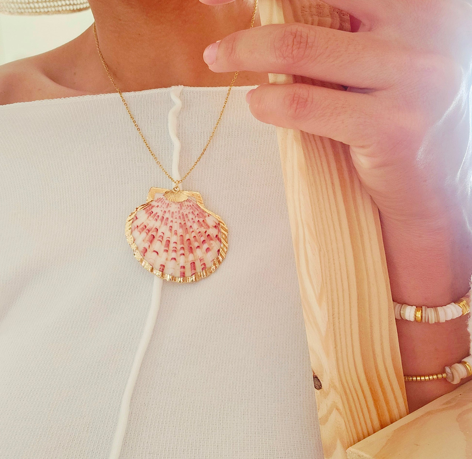 🐚À noter que les coquilles St Jacques étant des vraies, leur nuances rosées/rouge ainsi que leur taille peuvent légèrement varier d'un collier à un autre (voir les photos pour exemples)🐚
