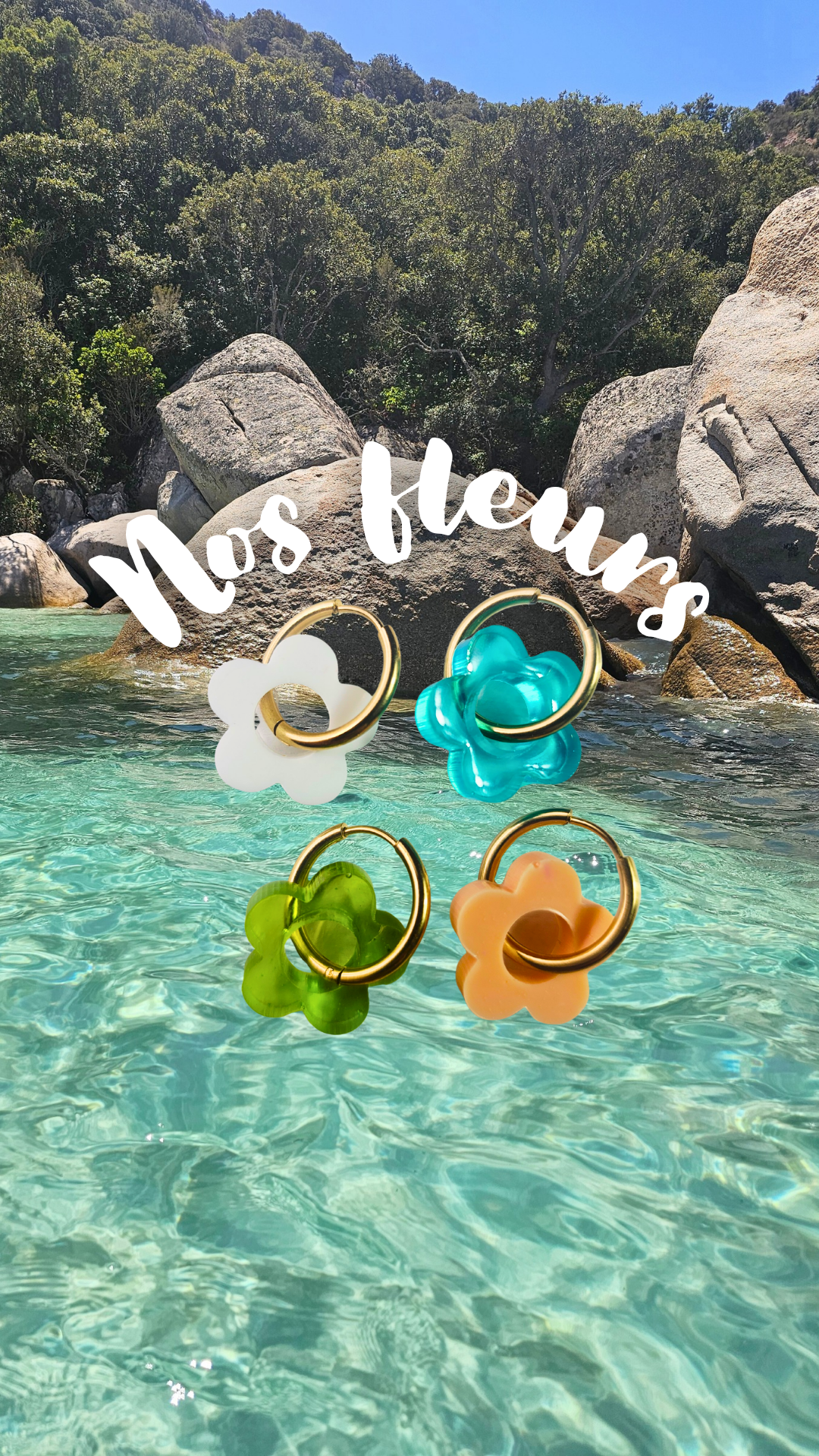 🌸LE PLUS : vous trouverez dans le menu la rubrique "recharge bijoux" vous y trouverez les fleurs en vente par deux à prix tout doux sans l'anneau en acier inoxydable si toutefois vous souhaitiez en avoir dans plusieures couleurs, pas besoin de racheter la paire complète, n'achetez que les petites fleurs 🫶