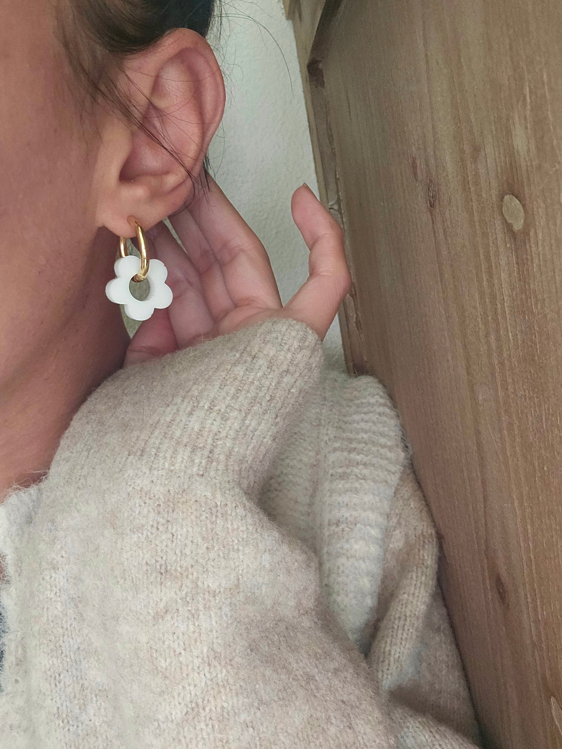 Les fleurs coulissent autour des créoles, vous pouvez donc les retirer comme bon vous semble.